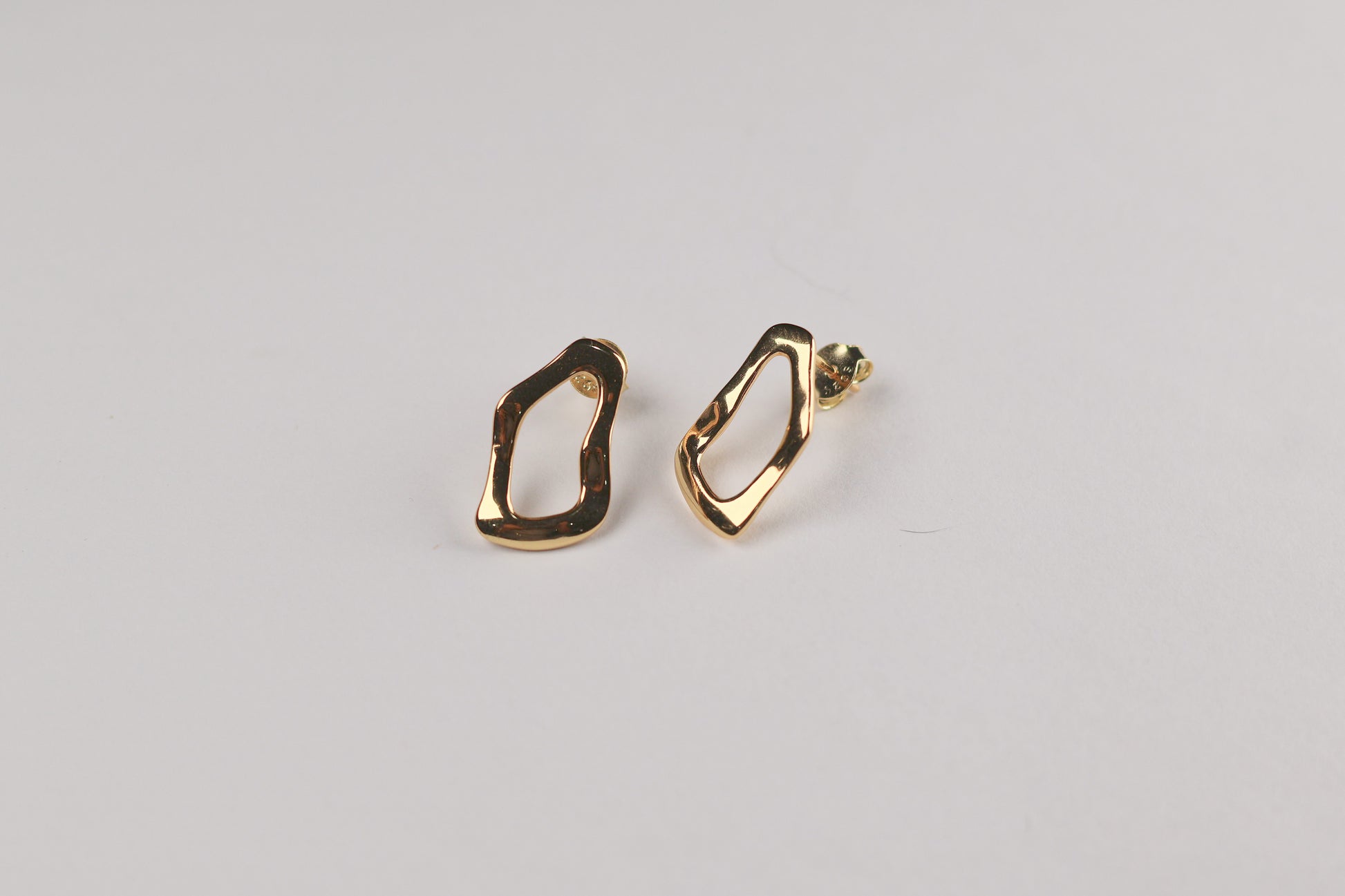 Aretes de diseño orgánico con silueta irregular, elaborados en plata 925 enchapados en oro. Su forma fluida y moderna los convierte en una pieza statement sutil, perfecta para elevar looks diarios o complementar outfits más sofisticados. Ligeros, cómodos y atemporales, ideales para quienes buscan joyería minimal con carácter.